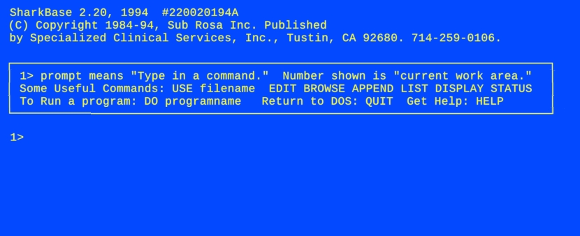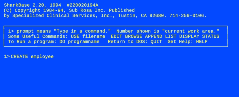 To sum up: there is no reason to mix versions of dBase/VP-Info/Shark on the same computer. SharkBase has a similar syntax and many updated featuress such as printer tools. Our recommendation is to use the latest multi-user/multi-tasking version of SharkBase (SHARKNET.EXE) on a modern emulator for all your projects (single or multi-user) since it's easily the fastest and most stable version and can read/write everything produced in VP-Info or dBase.